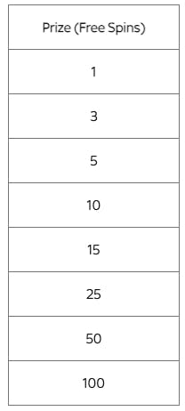 The following Free Spin prizes are available for each Tournament Period on each day of the Promotional Period (the 'Prizes').