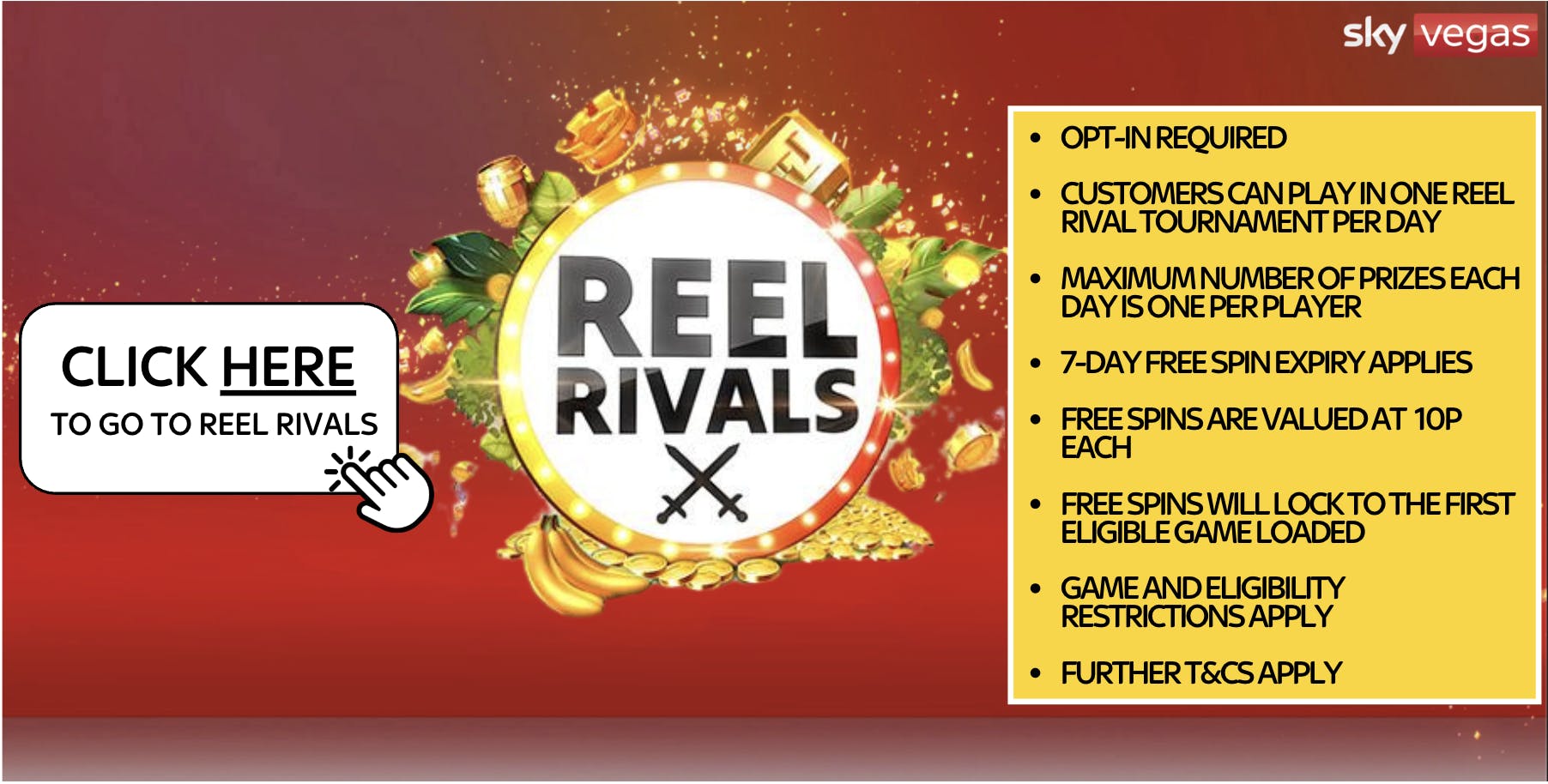 Reel Rivals are free to play tournaments and consist of multiplayer head-to-head battles ('Reel Rivals Battles') which give Eligible Players a chance to collect points during the tournaments to win free spins. You can visit the promotional page by clicking here.